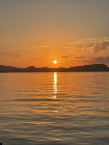 21:00 Die Sonne geht wieder in wunderschönen Farben hinter Porto Ferraio unter. wir gehen nochmal schwimmen, es ist so angenehm glatt das Meer jetzt, so wie ich es liebe.