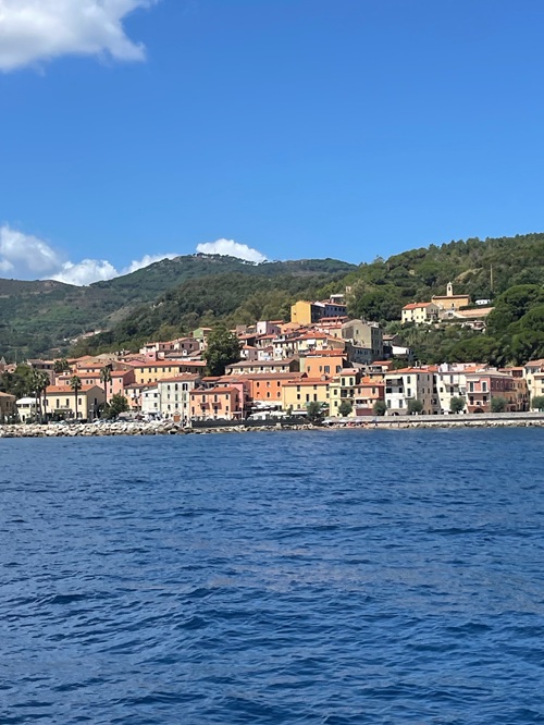 Vorbei an Rio Marina, wo unsere Kinder, als sie klein waren, mit Hammer und Meisel ausgerüstet, im Bergwerk nach Mineralien stemmen durften. Ich weiß nicht, ob das noch angeboten wird und ob noch jemand daran Interesse hat. Damals war es ein Hype und sie waren mit vollem Eifer dabei.