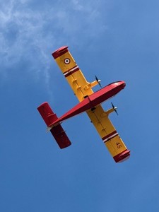Die Lösch Flugzeuge drehen schon wieder ihre Runden. Sie sind so hübsch anzusehen vor dem blauen Himmel.