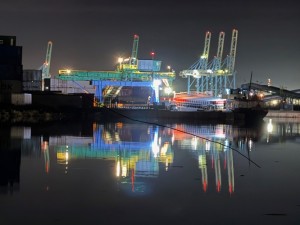 Drüber dem Kanal bei den Kränen wird fleißig abgeladen und gearbeitet.