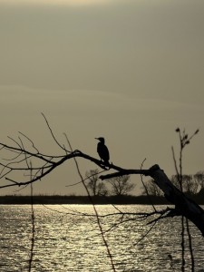 Am Heimweg ist ein Kormoran ein beliebtes Fotomotiv für die vorbei gehenden, wie er stolz auf seinem Baum sitzt und alles überblickt.