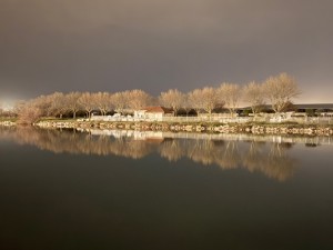 Im Moment ist es völlig windstill und so still, dass man eine Stecknadel fallen hört, sagt man. Gestern wusste ich noch nicht, dass es die Ruhe vor dem Sturm ist. So sind wir unbeschwert und genießen den Abend draußen.
