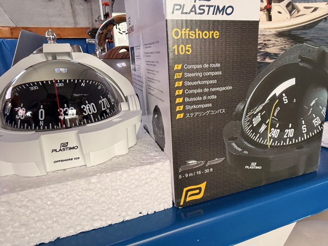 11.00 Ich laufe zum Bootsshop. Unser neuer, hübscher, weißer Kompass ist schon da seit Gestern. Das ging aber schnell.